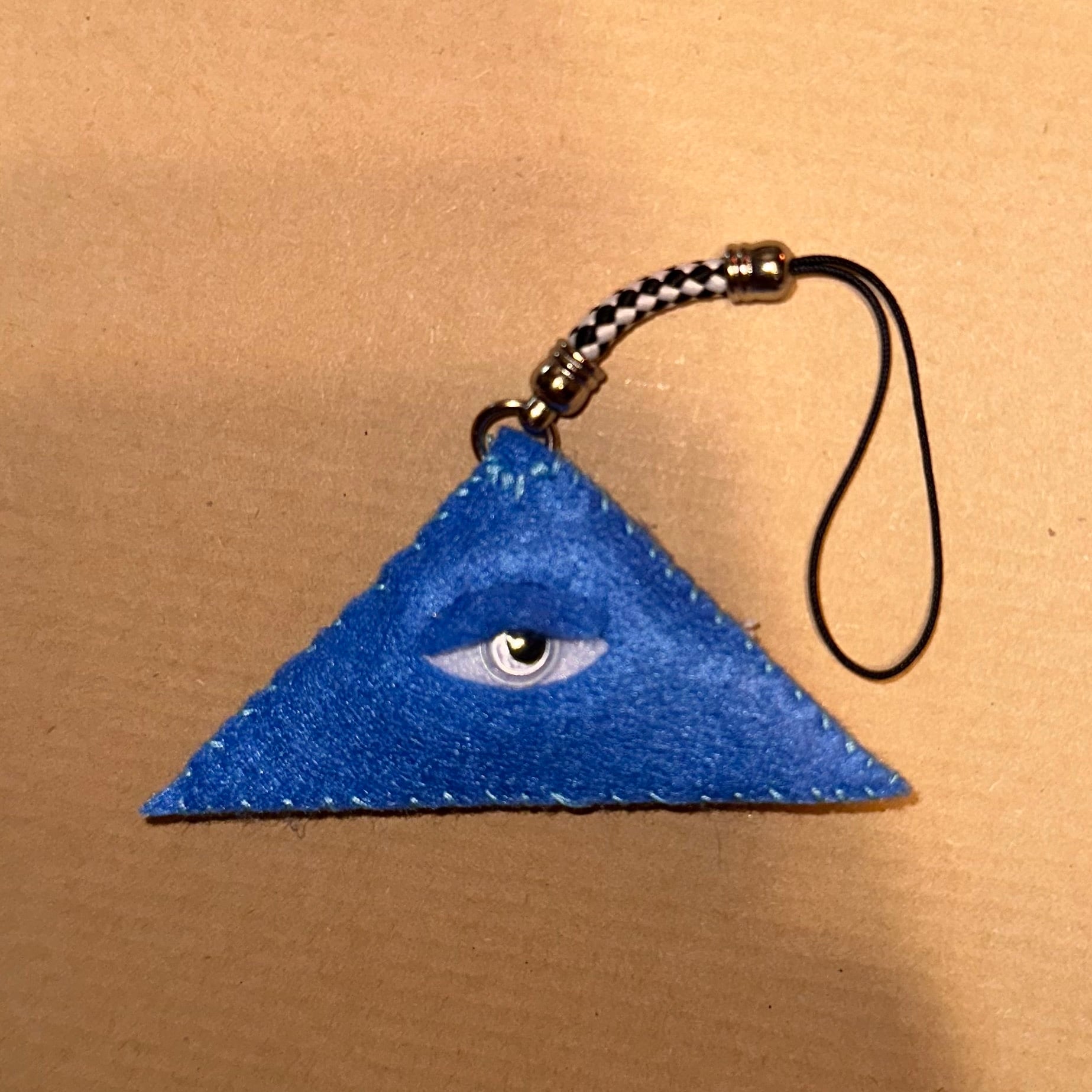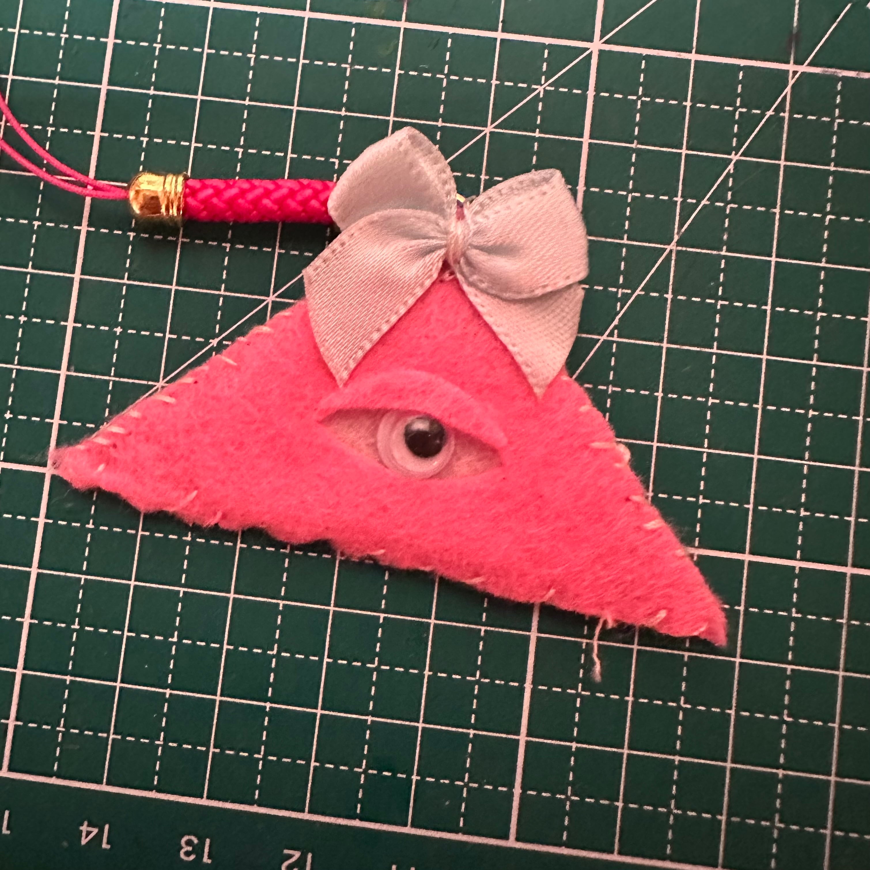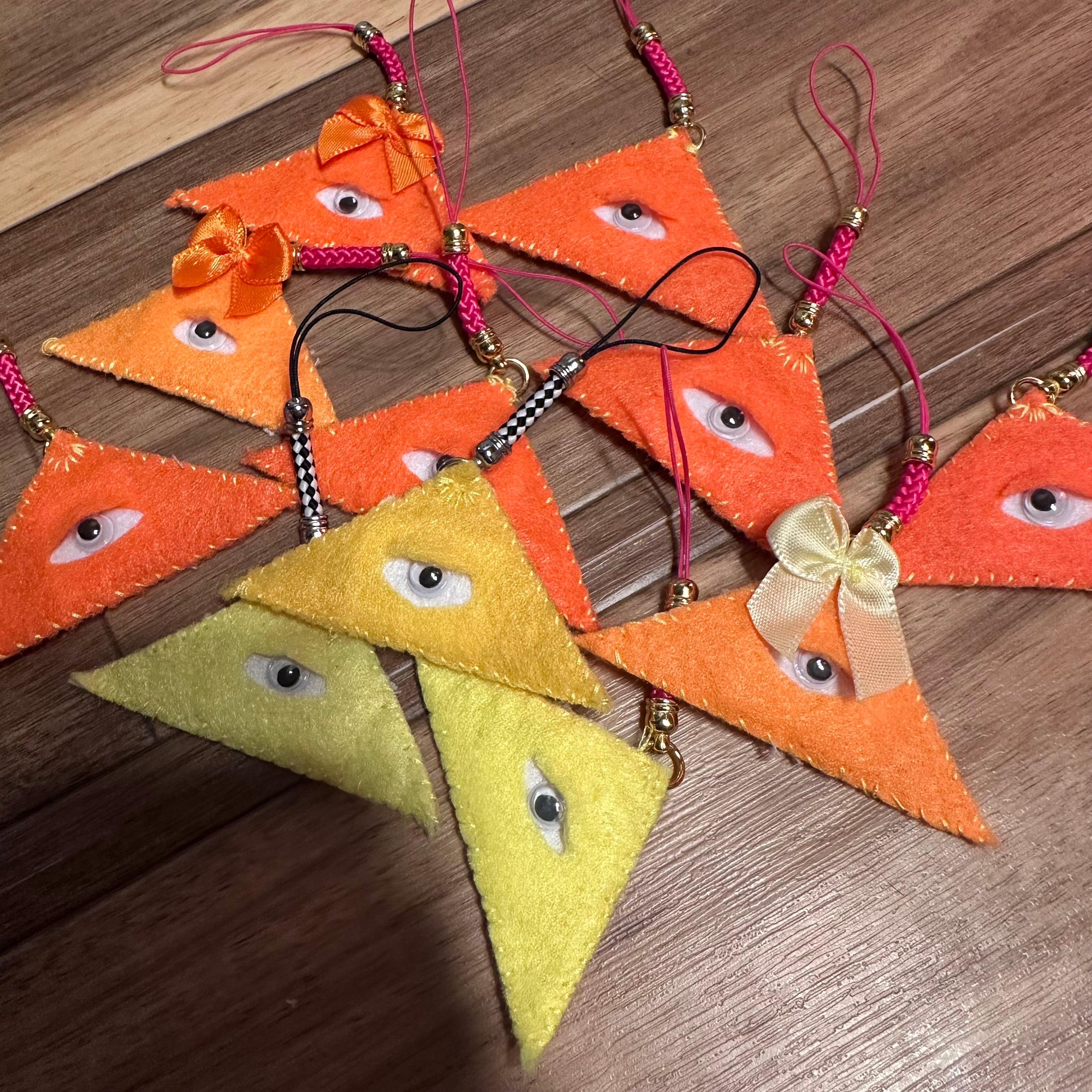一つ一つ仕立てた三角形のキーホルダー。